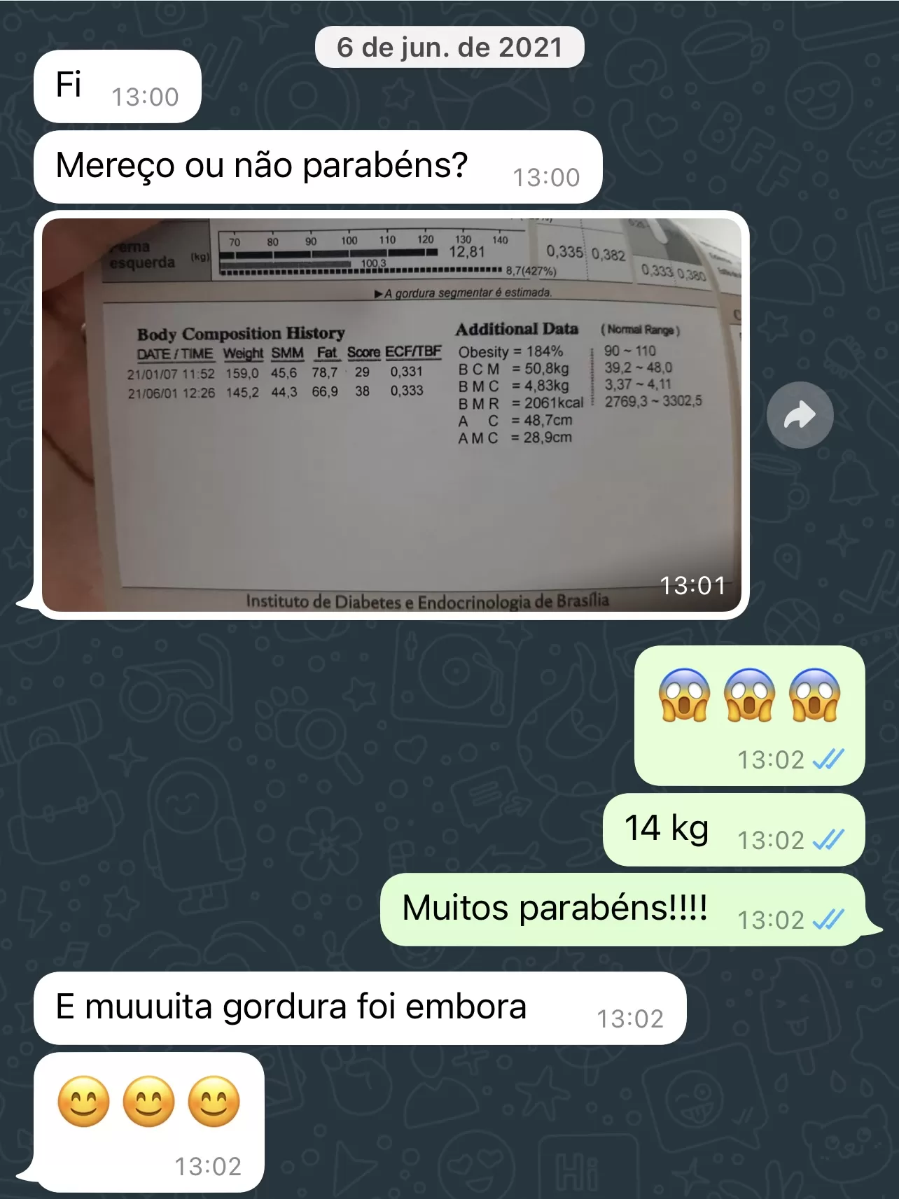 Por isso, entendendo que a vida acontece a todo instante e não somente no momento das consultas, durante todo o tratamento você terá canal livre de WhatsApp comigo para tirar suas dúvidas, compartilhar suas conquistas e claro, vou adaptar a sua dieta sempre que necessário.